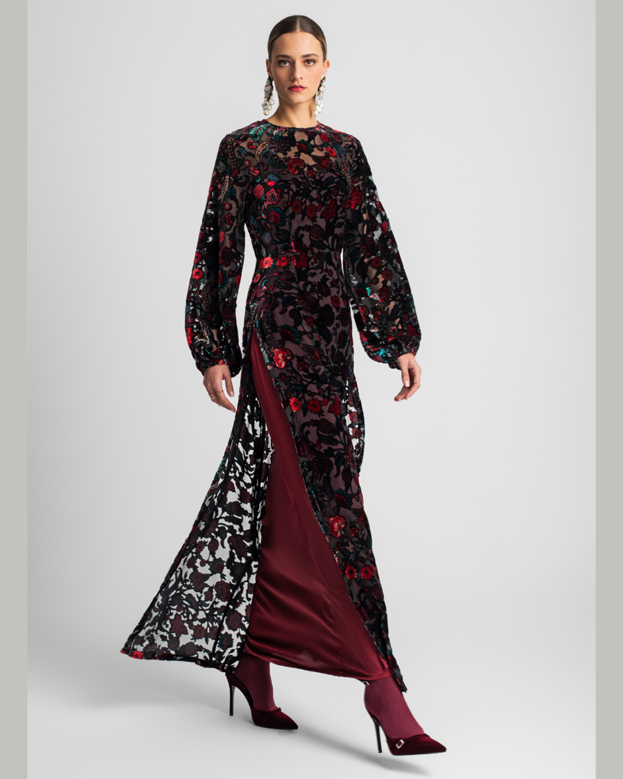 Cozy knit sweaters and sweater dresses, cold shoulder shirts and color-blocked coats in a palette of steely grey's make up the contemporary cool line of apparel by Greek fashion label, Moutaki.