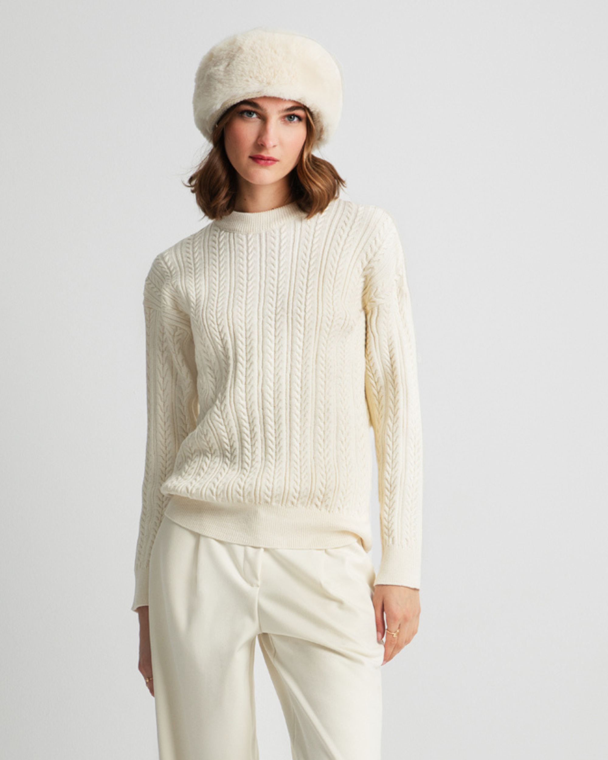Cozy knit sweaters and sweater dresses, cold shoulder shirts and color-blocked coats in a palette of steely grey's make up the contemporary cool line of apparel by Greek fashion label, Moutaki.