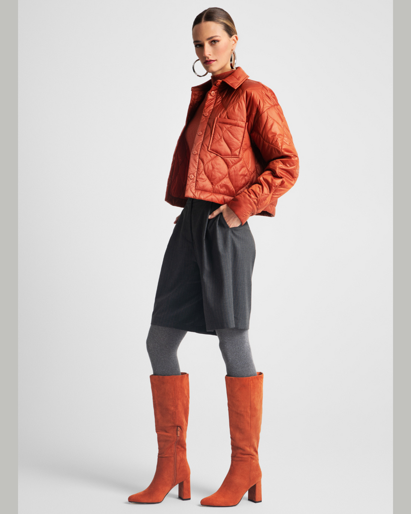 - Quilted puffer jacket in brick